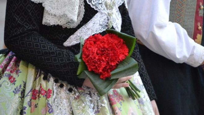 Les falleres majors de València i la cort d’honor entregarien també el seu ram a la imatge del Patriarca en el pont de Sant Josep
