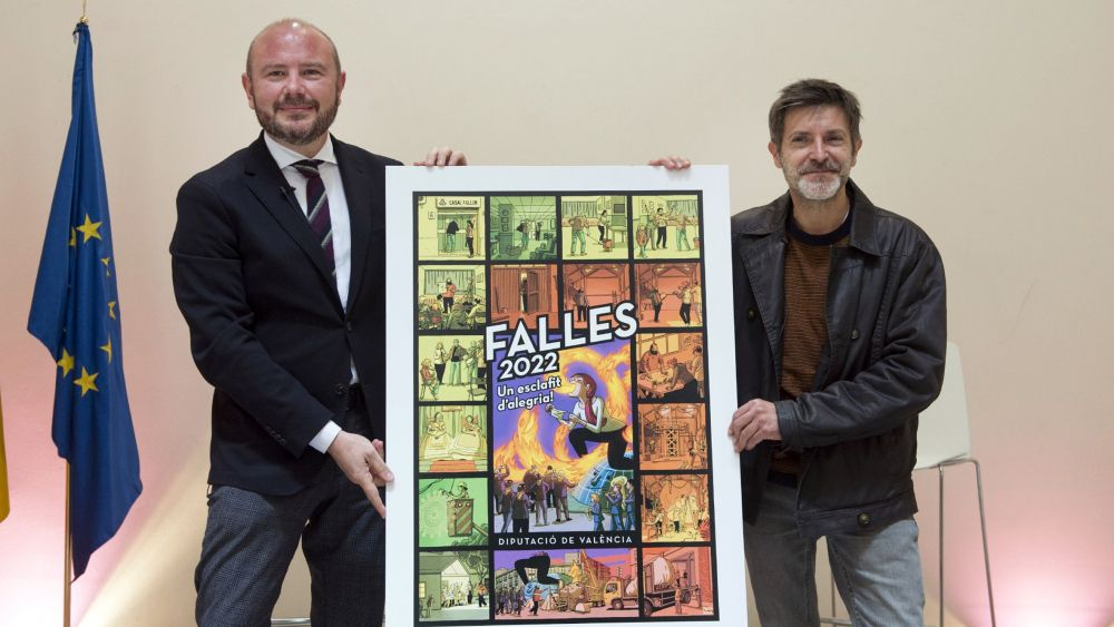 La Diputació de València ha presentat hui dimarts el cartell de Falles 2022, elaborat pel dibuixant i il·lustrador valencià Paco Roca, i que servirà d'imatge per a les festes falleres que se celebren en nombrosos municipis de la província.