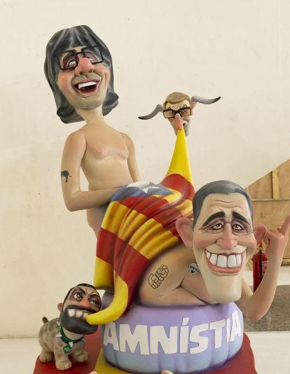 Enguany, es podria dir que l'amnistia ha monopolitzat l'Exposició del Ninot amb nombrosos ninots en els quals es representen les negociacions entre els socialistes i el líder de Junts, Carles Puigdemont. No obstant això, hi ha hagut un d'ells que s'ha viralitzat per tota Espanya. Es tracta del de la Falla Pere Cabanes - Comte de Lumiares de l'artista Toni Fornés en el qual apareix el president del Govern, Pedro Sánchez, "fent l'amor" amb Puigdemont sota una bandera independentista que tracten d'arrancar Feijóo en forma de mosca i Abascal de gos.