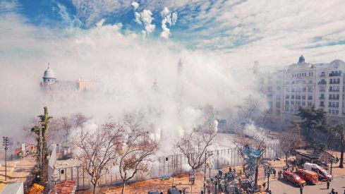 Durant les Falles, València es converteix en la catedral de la pólvora i, sens dubte, una de les cites ineludibles és la mascletà de la plaça de l'Ajuntament. Cada dia, a les 14.00 hores, centenars de persones es concentren en aquest espai emblemàtic de la ciutat per a gaudir de la mascletà de les Falles de València. Trets on es combina la innovació i el soroll de la mascletà que fa vibrar al públic assistent quan arriba el gran terratrémol final.