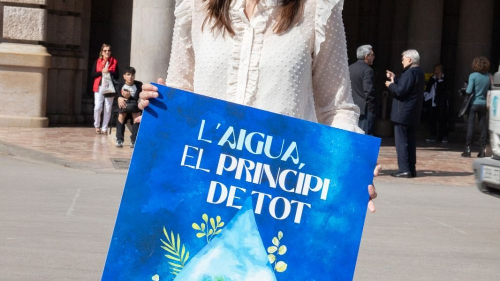 Elisa Valía amb el cartell del dia mundial de l'aigua