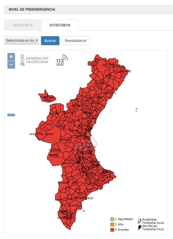 L'onada de calor comença a remetre aquest dilluns, 1 de juliol, ja sense avisos per temperatures elevades en la Comunitat Valenciana, mentre segueix el nivell de preemergència per incendis forestals en roig (risc extrem) en tota la regió, segons la predicció de l'Agència Estatal de Meteorologia (Aemet) i el Centre de Coordinació d'Emergències 112 de la Generalitat.