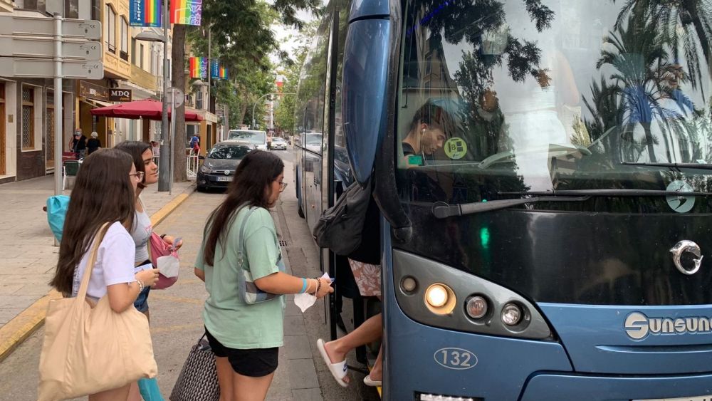 Unes joves utilitzen el servici d'autobús Cata-rosa