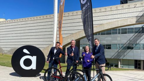 Alfred Costa (director general d'À Punt), Javier Castellar (president de Podium), Mar Iglesias (presidenta de la CVMC) i Ricard Cobo (subdirector d'esports d'À Punt Mèdia)