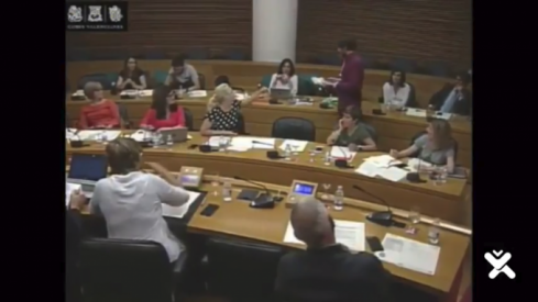 Entre els intents de calmar els ànims per part de la presidenta de la Comissió, una diputada de la bancada d'esquerres esgrimia: "Quan parlem la gent d'esquerres ací, no ens deixeu parlar". Al que una parlamentària del PP va saltar per a acusar al grup de la seua interlocutora d'interrompre "contínuament".