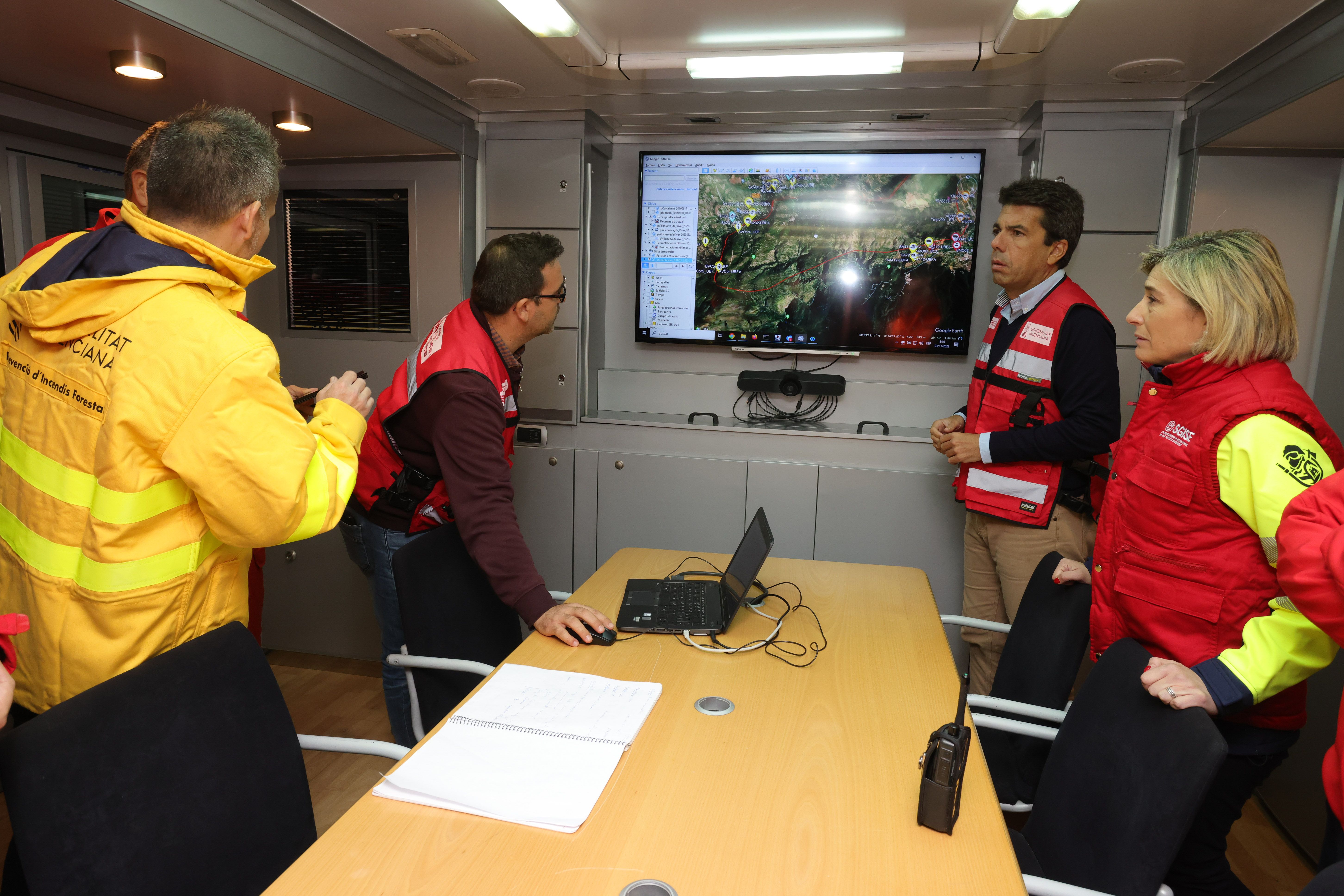 Carlos Mazón s'ha interessat pel treball coordinat que estan realitzant tots els equips d'extinció forestal desplaçats a l'incendi, que a primera hora d'aquest divendres ha afectat aproximadament 2.000 hectàrees, i ha agraït també la col·laboració de les comunitats de Castella-la Manxa, Múrcia, l'UME i del Ministeri Transició Ecològica, que estan enviant a l'incendi unitats d'extinció aèries i terrestres.