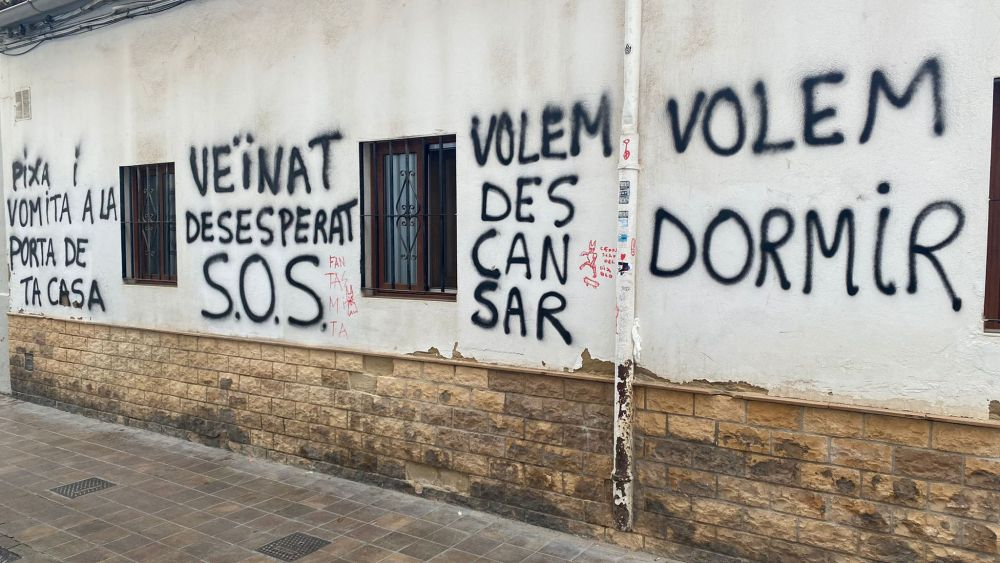 Catalá ha assenyalat que són molts els veïns de Plaza Hondures, Montolivet, Marxalenes i Benimaclet que ens estan traslladant la seua situació límit perquè no poden aguantar un altre cap de setmana sense poder descansar per culpa dels botellons. Prova d'això són les pintades amb les quals ha començat el dia una casa de Benimaclet on els veïns criden un SOS.