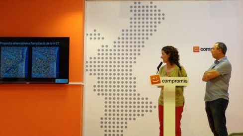 El portaveu de Compromís al Congrés, Joan Baldoví, i la diputada de Compromís a les Corts, Graciela Ferrer, han presentat este dilluns en roda de premsa la proposta alternativa de la coalició al projecte d'ampliació del tram Carraixet-València de la V-21, una proposta més sostenible, econòmica i respectuosa amb la Llei de Protecció de l'Horta impulsada pel Govern del Botànic.