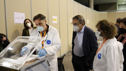 Rovira ha visitat esta vesprada, acompanyat per la secretària autonòmica de Cultura, Pilar Tébar, i del director general de Cultura, Miquel Nadal, les instal·lacions de Fira València, on s'està duent a terme el treball de recuperació, assecat i neteja de documents d'arxius, pintura i tèxtil afectats per la riuada.