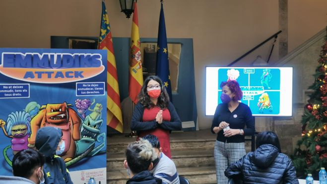 Un joc perquè els xiquets, xiquetes i adolescents, coneguen els seus drets. Aquesta és la idea que subjau després del joc 'Emmudis Attack', un joc de taula didàctic l'objectiu de la qual és acabar amb els monstres que amenacen els drets dels menors i que aquests "aprenguen que són subjectes de ple dret en aquesta societat". Així ho ha destacat aquest matí la vicepresidenta i consellera d'Igualtat i Polítiques Inclusives, Mònica Oltra, que ha afegit que "hem volgut transformar la llei en un joc".