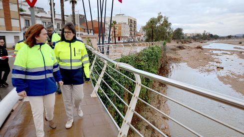 La diputada provincial de Carreteres, Reme Mazzolari, acompanyada per l'alcaldessa de Carlet, Laura Sáez, ha visitat les obres d'emergència activades per la Diputació de València per a la reconstrucció del pont sobre el riu Magre en l'accés a Carlet a través de la CV-524.