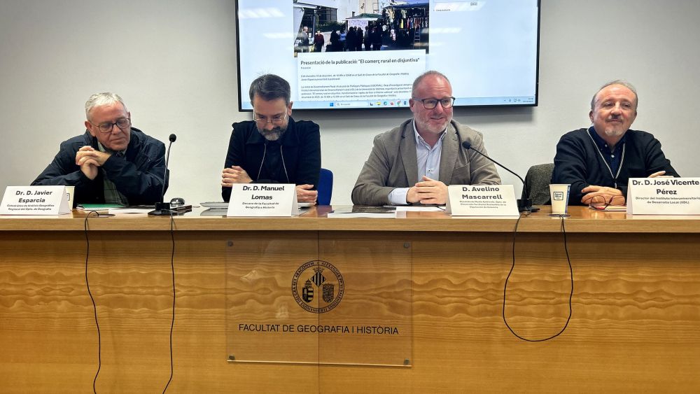 En la presentació, que ha tingut lloc en la facultat de Geografia i Història de la UV, han sigut presents el degà, Manuel Lomas; el catedràtic Javier Esparcia -coordinador de l'obra- i el director de l'Institut Interuniversitari de Desenrotllament Local, José Vicente Pérez.