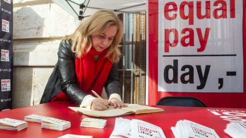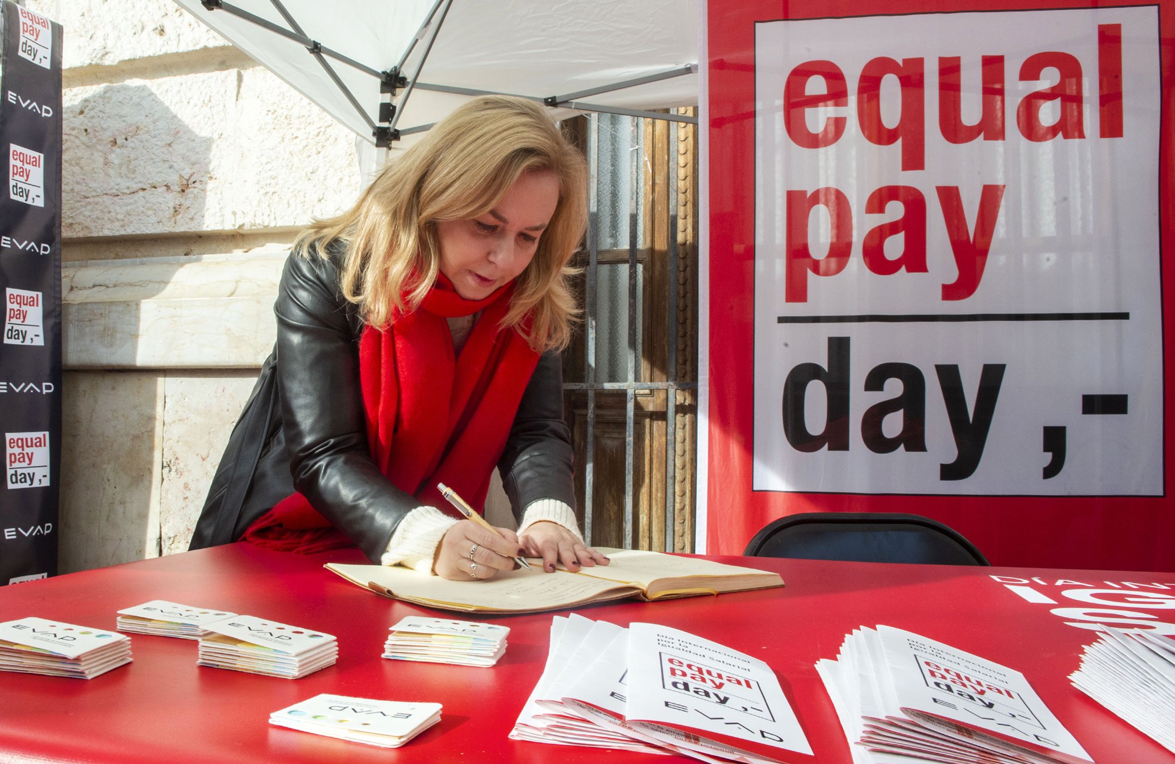 La Diputació de València s'ha sumat este dilluns a la celebració del Dia Internacional per la Igualtat Salarial, i ha participat en un acte organitzat en la plaça de l'Ajuntament de València per l'Associació d'Empresàries, Directives i Professionals de València (EVAP), que ha comptat amb diferents activitats de conscienciació per a denunciar que la bretxa salarial per raó de sexe continua existint.