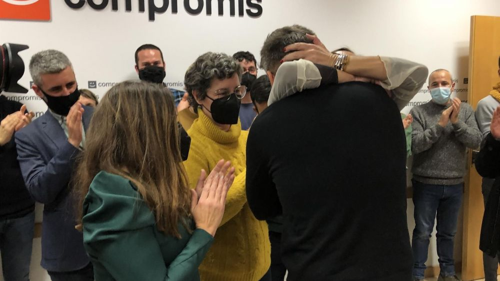 Comiat de Fran Ferri després d'una roda de premsa en la seu de Compromís