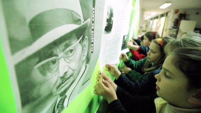 Imagen de una actividad escolar en homenaje a Enric Valor