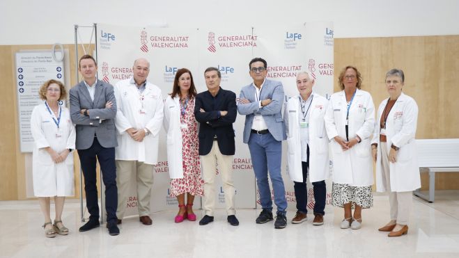 L'equip directiu de l'Hospital La Fe juntament amb el conseller de Sanitat, Marciano Gómez
