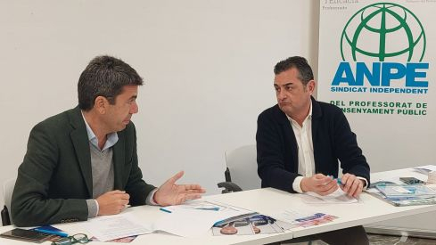 Mazón, acompanyat de la portaveu d'Educació Beatriz Gascó, ha mantingut una reunió amb representants del sindicat educatiu ANPE-Comunitat Valenciana encapçalats pel seu president Laureano Bárcena, on ha assenyalat que "es tracta de reforçar de veritat l'educació pública i, la millor manera de fer-ho, és reforçar la figura de les nostres professores i dels nostres professors, desenvolupant la llei d'autoritat i donant-los tota la confiança perquè puguen treballar a les aules com es mereixen".
