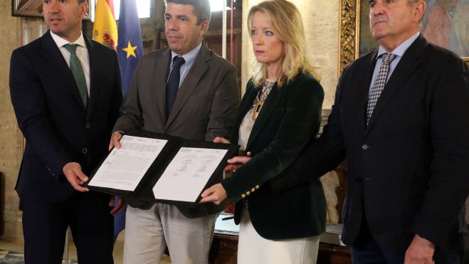 El president de la Generalitat, Carlos Mazón, ha presidit la firma del conveni de col·laboració entre la Generalitat, la Diputació de València i la Federació Valenciana de Municipis i Províncies (FVMP) per a agilitzar la posada en marxa de mesures del Pla Endavant, amb el que ha assegurat “renovem un compromís per la cooperació lleial, la planificació compartida i la confiança mútua per a una reconstrucció més ràpida i eficaç”.