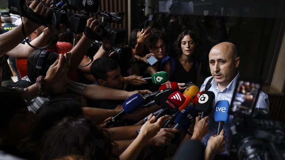 El presidente de la Confederación Hidrográfica del Júcar, Miguel Polo, ofrece declaraciones a los medios a su llegada a declarar como testigo en el juzgado de Catarroja por la dana.   Rober Solsona   Europa Press