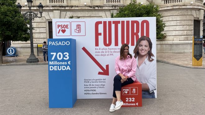 Per a això, s'ha instal·lat en la plaça de l'Ajuntament -icona de la 'ciutat de places'- un punt on veïns i visitants poden veure retallades de premsa sobre polítiques impulsades pel PP sota el nom de "El passat de Catalá", en referència a la candidata a l'alcaldia 'popular', que es contraposen amb el "futur" de polítiques progressistes que proposa l'actual vicealcaldessa Sandra Gómez, i que han permés "sanejar un Ajuntament que trobem en fallida".