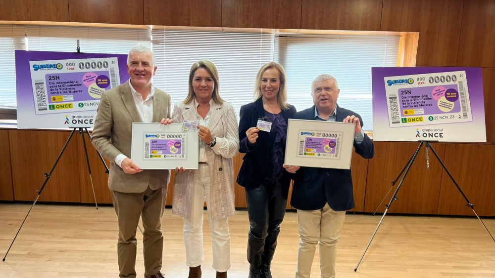 Susana Camarero ha assistit, al costat del president del Consell Territorial de l'ONCE a la Comunitat Valenciana, Enrique Llin, a la presentació del cupó que l'ONCE ha dedicat amb motiu de la celebració el pròxim dia 25 de novembre del Dia Internacional per a l'Eliminació de la Violència contra la Dona.