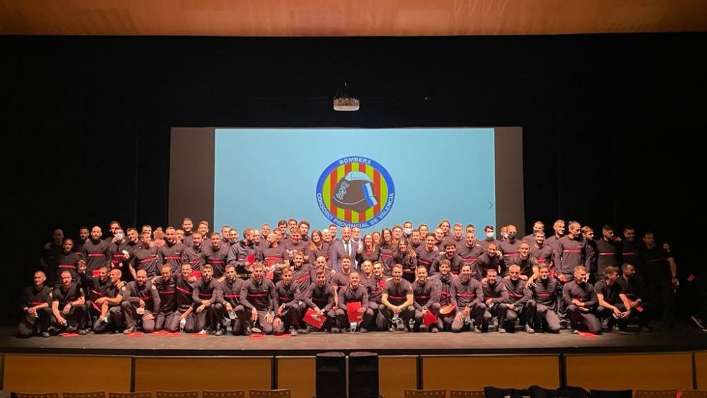 El president de la Diputació de València, Toni Gaspar, i la presidenta del Consorci Provincial de Bombers i vicepresidenta de la corporació provincial, Maria Josep Amigó, han presidit l'acte de presa de possessió de 83 nous bombers i bomberes que passen a formar part del planter de funcionaris de carrera del Consorci.