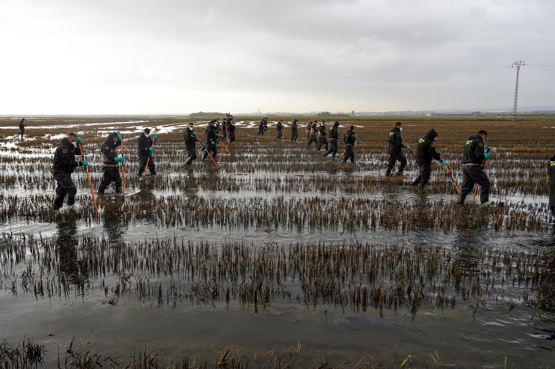 Diversos agents de la Guàrdia Civil continuen buscant cossos en l'Albufera de València per la DANA (Eduardo Manzana-Europa Press)