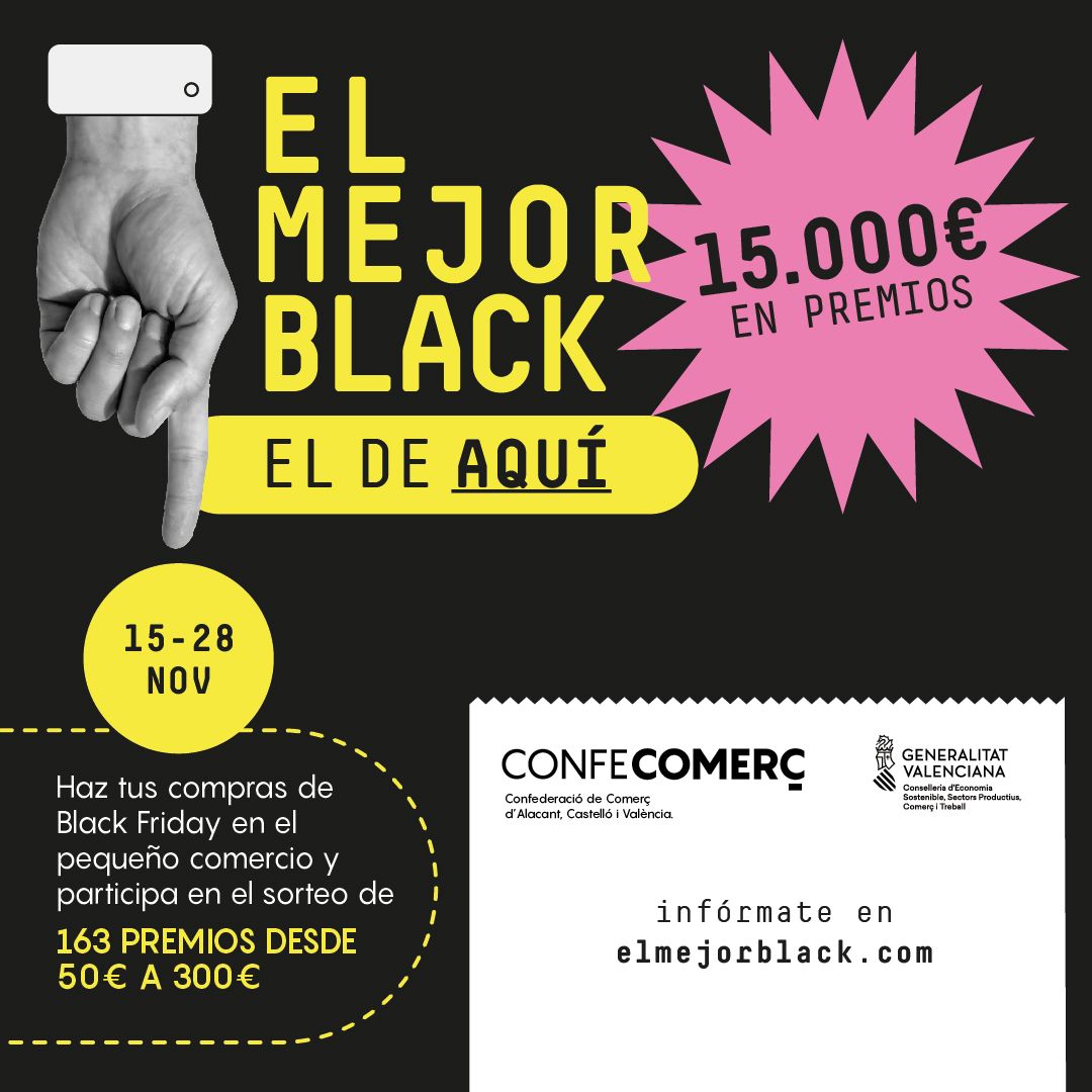 La Confederació d'Empresaris del comerç, servicis i autònoms de la Comunitat Valenciana (Confecomerç), ha organitzat la campanya del xicotet comerç “El Millor Black, el d'Ací”. Aquesta iniciativa, que compta amb el sorteig de 163 vals de compra amb imports que oscil·len entre 50 i 300 €, regalarà 15.150 euros als consumidors pel fet de participar i fer costat al xicotet comerç.