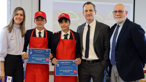Beatriz Guiral, Recursos Humans de la cadena d'hamburgueseries, i Jeremy Palacio, CEO de Fermax, van acompanyar a Rafa Costa, professor titular del Departament d'Economia i Emprenedoria de Cumbres School València. Durant aquesta primera edició, els alumnes de 1r de l'ESO van exposar en anglés com diferents companyies han aconseguit aconseguir l'èxit.