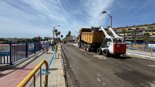 Després de l'asfaltat de la calçada del pont sobre el barranc del Poyo que s'està realitzant durant el dia de hui, s'obri al trànsit amb senyalització provisional i una vegada que l'aglomerat ja haja refredat completament, es realitzarà el pintat de les marcades vials i passos de vianants al costat de la rotonda.