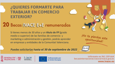 Ivace Internacional ha publicat les beques d'especialització en internacionalització Ivace E+E, Exportació i Ocupació, dirigides a persones menors de 30 anys que hagen acabat la Formació Professional tant de cicle mitjà com de cicle superior.