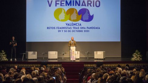 El Teatre Principal de València acull des d'aquest divendres i fins al migdia del dissabte la cinquena edició del Feminari de la Diputació de València que, sota el títol 'Reptes feministes després d'una pandèmia', tracta de garantir la resposta de les dones als grans canvis que se succeeixen en la societat postpandèmica. Una transformació ràpida i imprevista que, com defensa el president de la Diputació, Toni Gaspar, "ha de tindre sí o sí una mirada feminista per a continuar lluitant per la justícia social que la història deu a les dones".