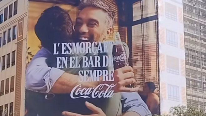 I és que l'enorme lona, situada en la Gran Via de la ciutat de València, tractava d'unir el consum del refresc amb un esmorzar valencià, senyal de la nostra identitat. Després de tres dies d'ostentació d'esta enorme fallada en la redacció en valencià, els operaris finalment han retirat la lona.