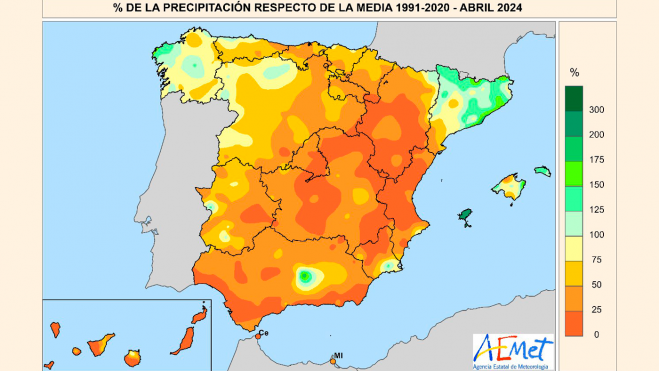 La falta de pluges ha sigut un altre aspecte destacat del mes d'abril en la zona. Les precipitacions acumulades han sigut significativament inferiors a la mitjana històrica, registrant-se només 16 l/m², quan el valor normal se situa entorn dels 40 l/m² per a esta època de l'any. Este dèficit hídric ha situat a abril de 2024 com un dels mesos més secs de les últimes dècades.