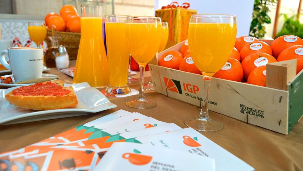 Des de hui 9 fins divendres que ve 13 de desembre, totes aquelles persones que prenguen el tradicional desdejuni valencià (consistent en café, llet o infusió al costat d'una torrada de tomaca o oli) en els locals participants, obtindran un suc natural gratis. Este s'elaborarà amb taronges autòctones de la varietat Navelina certificada per IGP Cítrics.