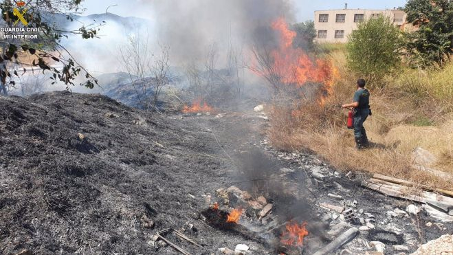 Agents de la Guàrdia Civil han evitat que un incendi, ocorregut en una parcel·la urbana del municipi de Canals, a La Costera, s'estenguera als vehicles i terrenys confrontants, utilitzant els extintors de l'ambulatori.