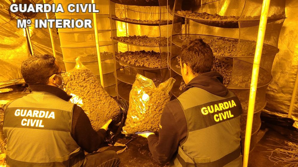 Els agents van poder confirmar en el registre com el garatge comptava amb diverses zones per a les diferents fases de cultiu, i com els detinguts vivien allí. En aquest registre es van aprehendre 25.000 grams de cabdells secs de marihuana, així com diferents efectes utilitzats per al bon desenvolupament i creixement de les plantes com 4 aires condicionats, 101 balastos de potència, 5 extractors, 28 ventiladors, 72 llums i portalàmpades de cultiu, 8 estufes de calor, etc...