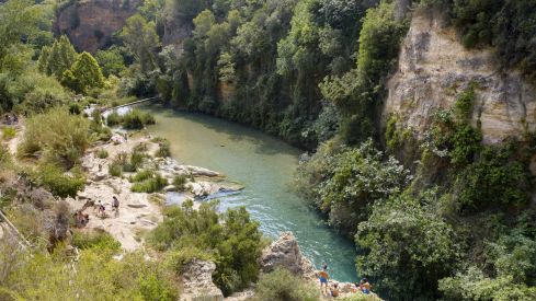El Gorgo de la Escalera, també conegut com a "Platja Continental", és un bell paratge natural que compta amb un canó tallat per les aigües del riu. Per a accedir a aquest lloc, s'han de baixar 136 escalons que condueixen a un barranc amb impressionants cascades i piscines naturals. Durant dècades, aquest entorn ha sigut un refugi per als qui busquen gaudir de la bellesa natural i la tranquil·litat que ofereix la contemplació de les aigües que cauen en cascada.