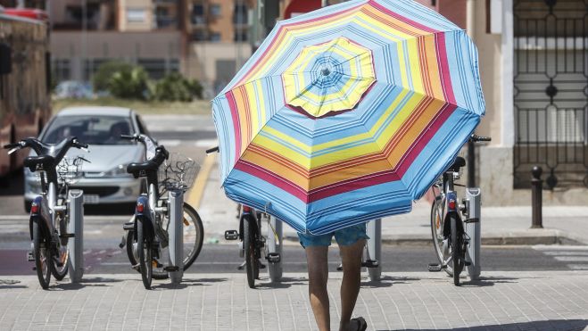 Un hombre con una sombrilla cerca de la Playa de la Malvarrosa (Valencia), - Rober Solsona - Europa Press