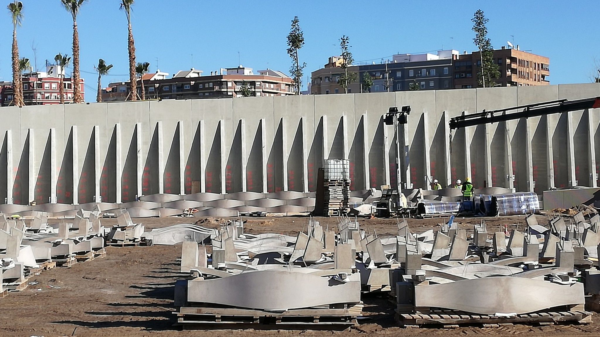 També es construiran panells de formigó de 3 metres d'alt per a separar aquesta primera fase del parc de les vies ferroviàries, a l'espera de les obres previstes per a soterrarlas. Al costat d'aquest mur, s'estan plantant diversos arbres i plantes a manera de pantalla vegetal.