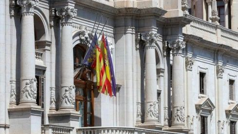 Imatge del balcó de l'Ajuntament de València