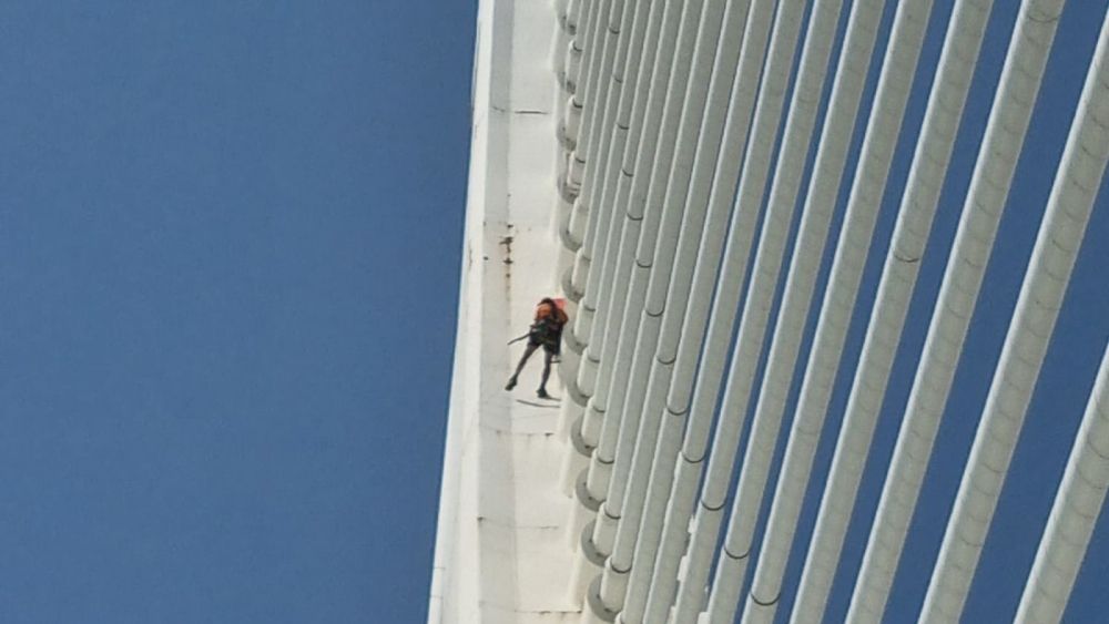 No obstant això, a causa de la configuració particular del pont, l'accés a certes àrees, com el masteler, és extremadament difícil. Això ha fet necessari comptar amb un equip d'operaris especialitzats en treballs en altura, els qui s'han recolzat en tècniques pròpies de l'alpinisme per a escalar i revisar cada racó del masteler. Aquests professionals no solament posseeixen una formació tècnica en treballs verticals, sinó també habilitats i coneixements avançats en muntanyisme, la qual cosa els permet manejar-se amb seguretat a grans altures.