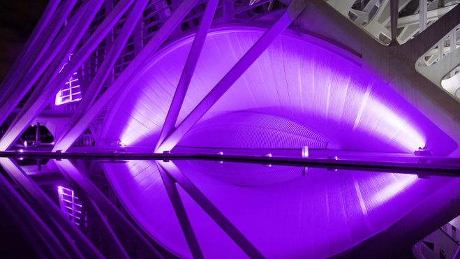 Aquest cap de setmana la Ciutat de les Arts i les Ciències es tiny de morat per a visibilitzar la violència contra les dones.