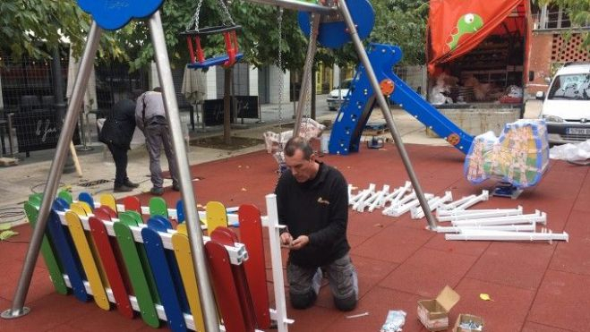 En aquest cas, s'està instal·lant un gronxador cistella adaptat, un gronxador doble amb un seient portabebés i un altre gronxador tipus taula de cautxú, dos jocs de molles, un d'ells adaptat, un tobogan i un cartell indicant les normes d'ús. Tot açò, sobre paviment de seguretat amortidor d'impactes. A més, el perímetre de la zona de jocs anirà delimitat d'una tanca de colors amb una palissada.