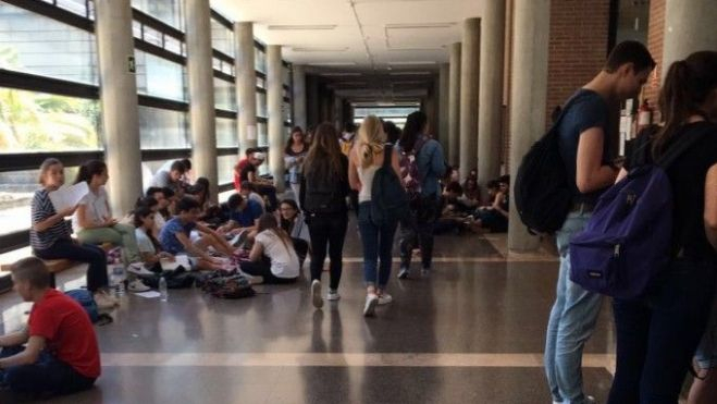 Estudiants en un corredor esperant entrar en un examen de la PAU