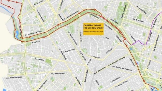 El diumenge 7 de maig, València acull la carrera Wings for Life, organitzada per la fundació internacional sense ànim de lucre per la investigació de les lesions de la medul·la espinal, el 100% de la recaptació de la qual es destina a la investigació. Amb motiu d'aquesta prova esportiva hi haurà diferents restriccions de trànsit pels llocs per on es desenvolupa.