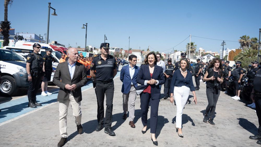 El dispositiu de vigilància de les platges de València comptarà amb una reguarda policial les 24 hores i un reforç de la il·luminació en el passeig. L'alcaldessa María José Catalá ha presentat l'operatiu de l'Ajuntament de seguretat, neteja, vigilància i socorrisme en el litoral de València per a la temporada estival, en el qual participaran més de 170 persones i mig centenar de vehicles.