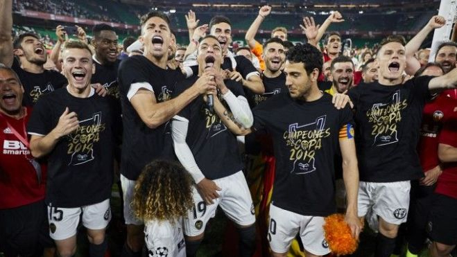 El Valencia Club de Fútbol ofereix aquesta vesprada als seus seguidors i a tota la ciutadania, des del balcó de l'Ajuntament, la Copa del Rei, guanyada per l'equip valencià dissabte passat a l'estadi sevillà Benito Villamarín, davant el Futbol Club Barcelona. Prèviament, jugadors, tècnics i directius seran rebuts al Saló de Cristall, en un acte en què l'alcalde en funcions de València, Joan Ribó, els donarà les gràcies «per l'exemple d'esforç i superació que han sigut per a l'afició valencianista en la temporada del Centenari de l'entitat».