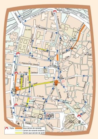 La nova mesura va limitar el tràfic –únicament a veïns que demostren ser-ho- en Serrans, Nàquera, Batlia, Corretgeria, Salvador, Almodí, Almirall, Venerables i Trinitaris. Amb açò, el centre històric de la ciutat va recuperar la seua essència per als vianants. La transformació dels carrers va consistir en el reparat del paviment, l'eliminació dels bol·lards i la instal·lació de nova senyalització. Per exemple, el carrer Serrans passava a ser de sentit oposat.