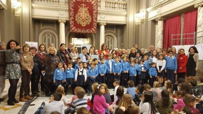 El Saló de Cristall de l'Ajuntament ha acollit hui a desenes d'escolars per a recollir el seu diploma de participació en el certamen "Iaio/a vull contar-te una cosa", un concurs de relats sobre els iaios i iaies en el marc de la 35a Setmana de les Persones Majors, que organitza la Regidoria de Persones Majors.